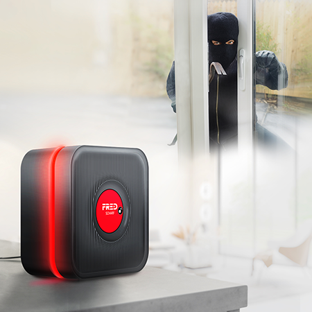 So können Vandalismus und das Durchsuchen der Räumlichkeiten verhindert werden und der Sachschaden, den ein Einbruch verursacht, kann minimiert werden. Ganz ohne Einbau und ohne Verlegen von Kabeln ist FR.ED binnen weniger Minuten einsatzbereit und überwacht ohne zusätzliche Sensoren bis zu 1000m² auf gewaltsame Einbruchversuche wie das Einschlagen, Aufbrechen oder Aufhebeln von Türen und Fenstern.